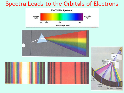 Flame colors and electrical discharge in gases give the spectral lines from which we derive the orbitals of the electrons about the nucleus of the atoms. Video: