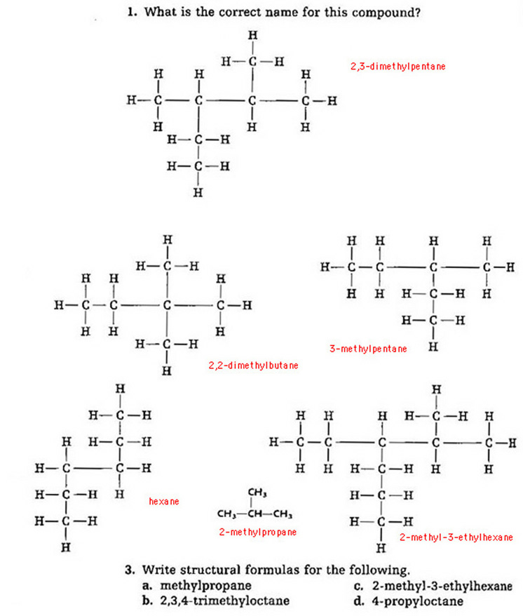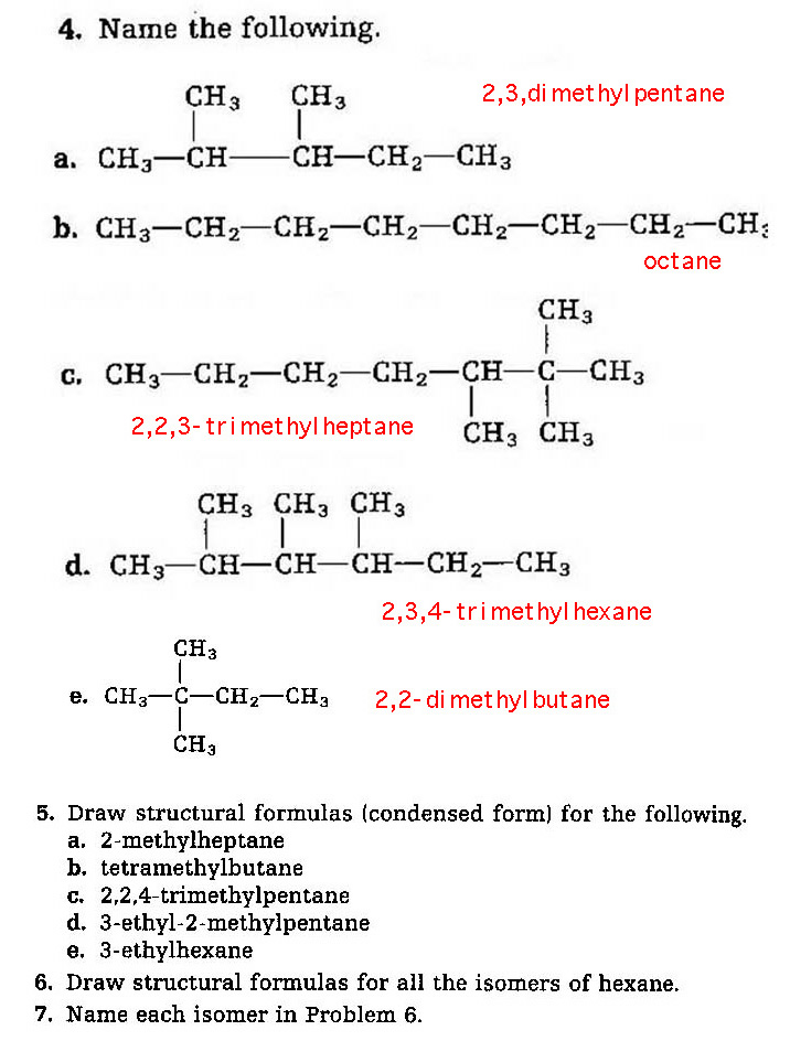 ...... a. a 6 carbon alkene, b. an 8 carbon alkane, c. a 10 carbon alkyne.