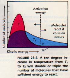 Note from the graph in Figure 23-5 that molecules must collide with a kinetic energy sufficient to react. Otherwise a collision will not lead to reaction.