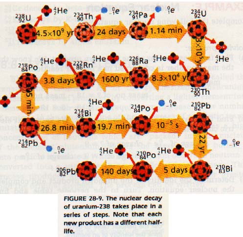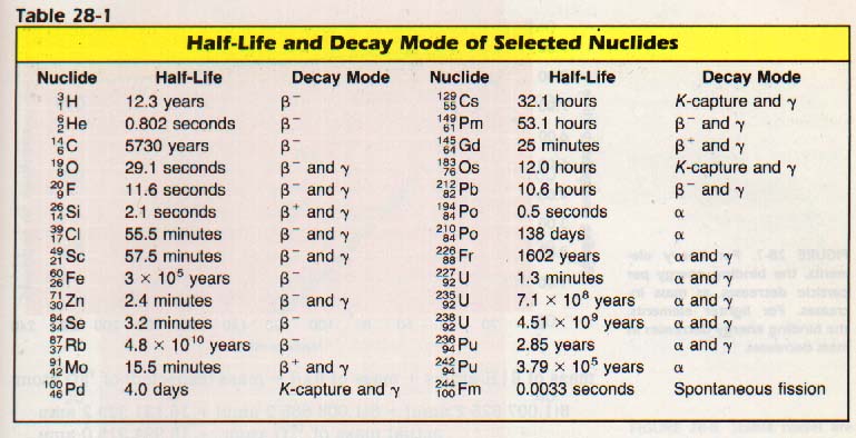 Nuclei which emit rays or particles are said to decay. Scientists have created many radioactive nuclides that do not exist in nature. These substances are generated by bombarding stable nuclei with accelerated particles or exposing stable nuclei to neutrons in a nuclear reactor, Section 28:10. These artificially radioactive nuclides can decay.