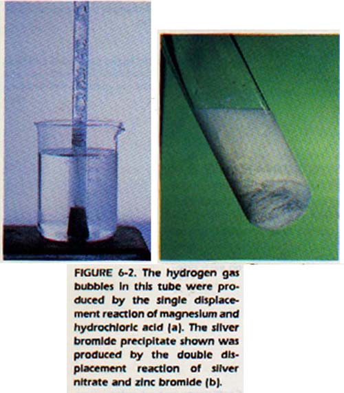 7. In a single displacement reaction, one element displaces another element. In a double displacement reaction, ions from two compounds are interchanged.