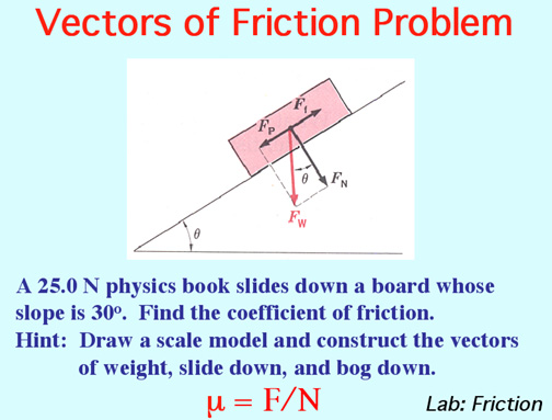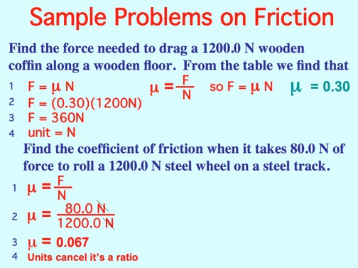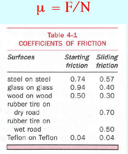The Coefficient of Friction is the ratio of the force of friction to the normal force. Normal is at right angles.