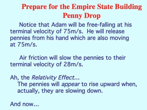 Terminal velocity of a penny dropped from the Empire State Building. Can it kill anyone? Video: