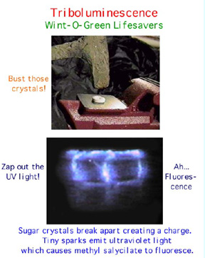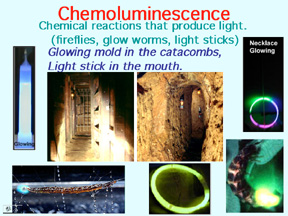 ..... Phosphorescence (absorbs light and reradiates it). Things that glow after a light is shown upon them.