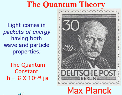 Max Planck gives us the Quantum Theory that states that light is composed of bundles of energy called Photons.