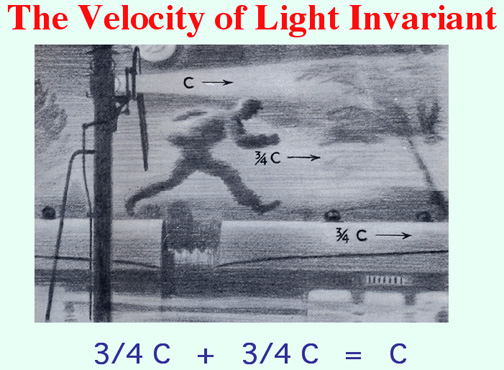 In a city where the speed of light is only 10 Km/hr, all other factors unchanged, we can experience what would happen if we approached the speed of light. Length contracts, times slows down, and the Doppler effect becomes great. Video: